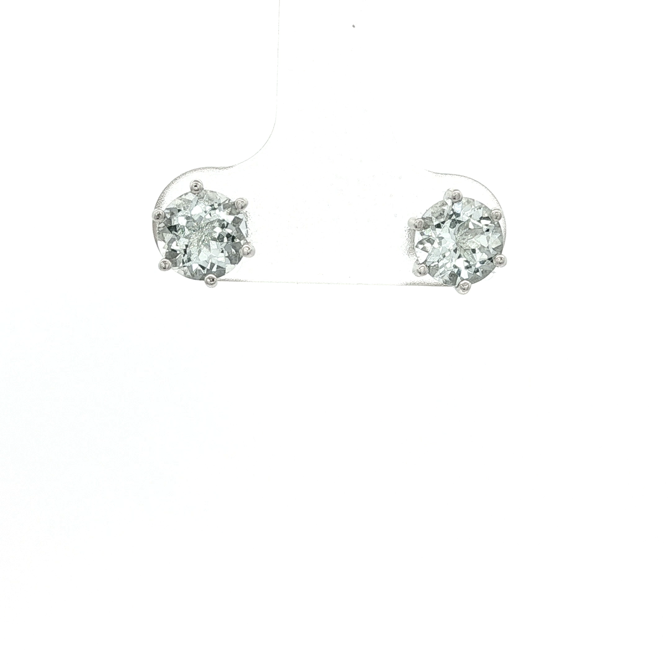 Round Cut Aquamarine Set in a 6 Claw 9 Carat White Gold Wire Basket With Butterfly Fittings
