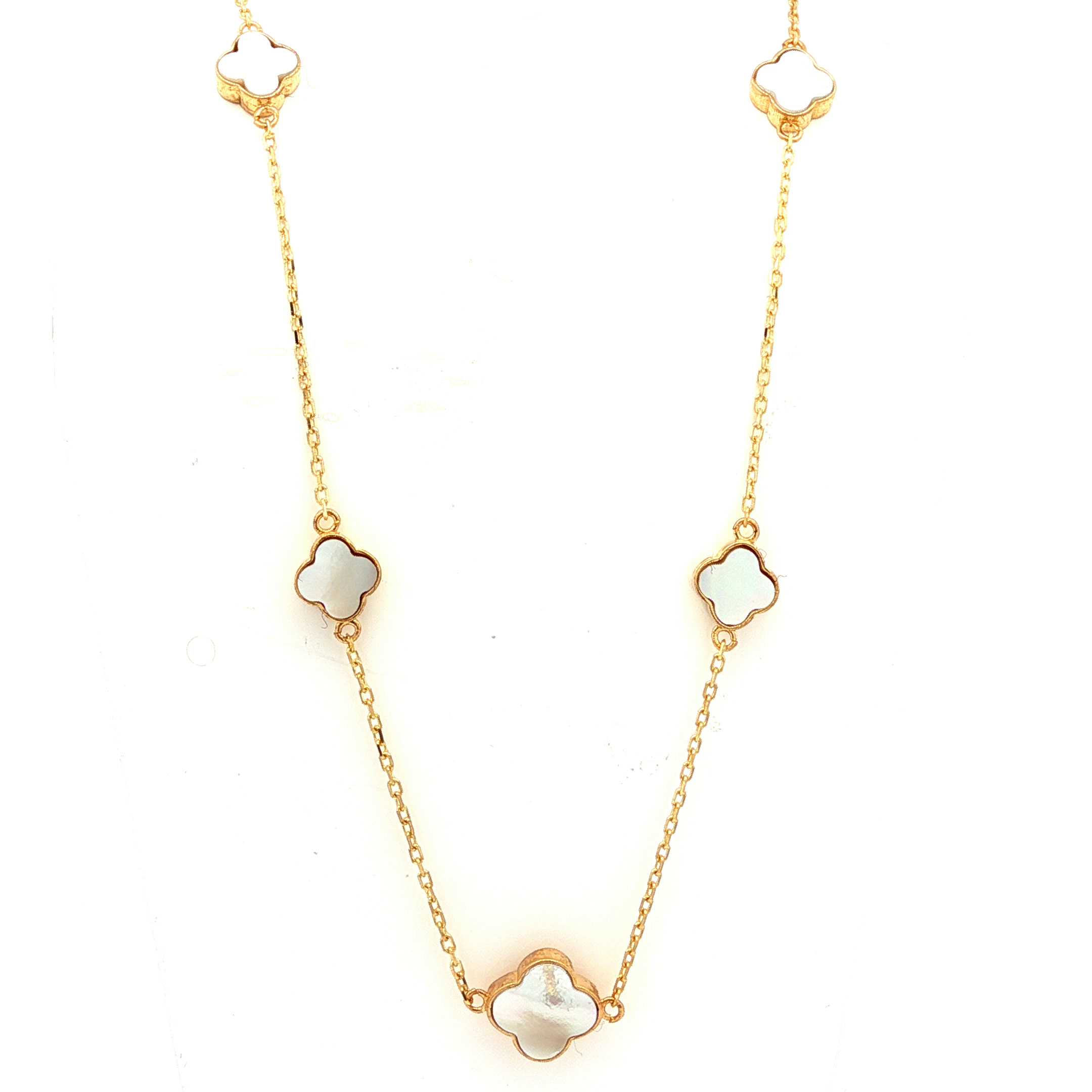 Mini Clover Mother of Pearl Necklace in Yellow Gold