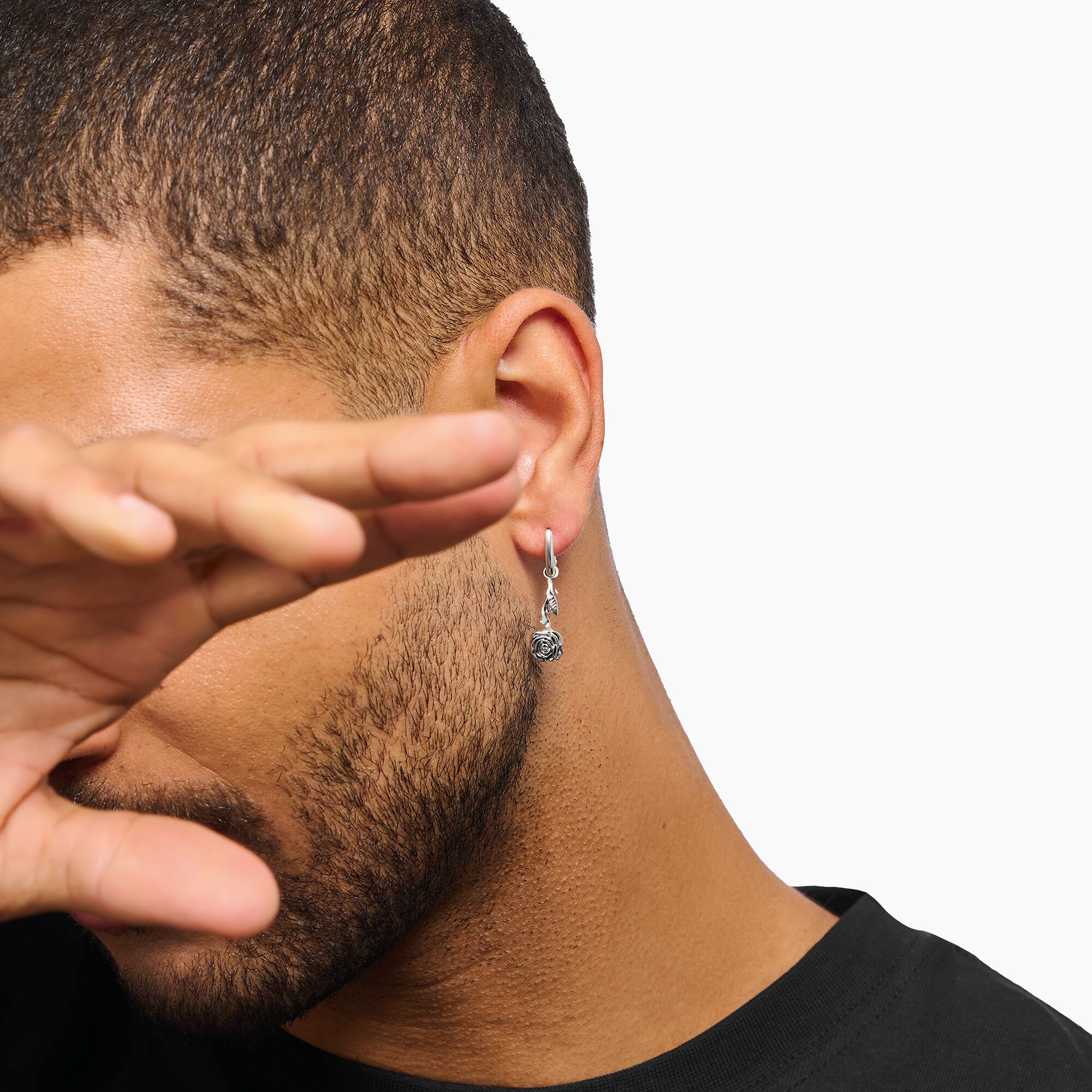 - Single hoop earring as a symbol of the upside-down rose - a traditional sign of rebellion and change, but also a sign of passionate love