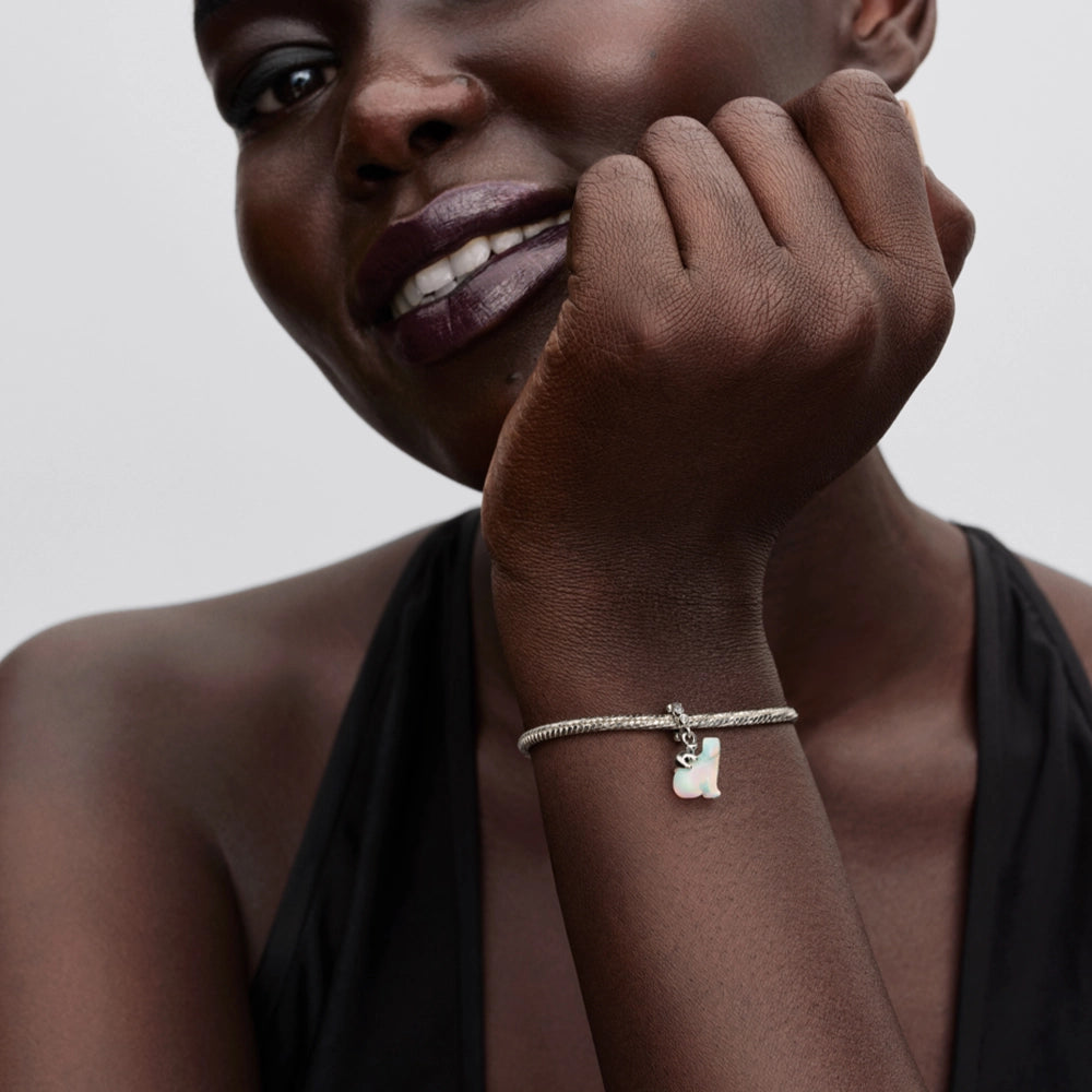 Inspired by unbreakable bonds, this sterling silver polar bear charm embodies love and connection. Crafted from aurora lab-grown opal resin and cubic zirconia, the mother cradles her cub, a symbol of deep affection. - Design number: 794243C01