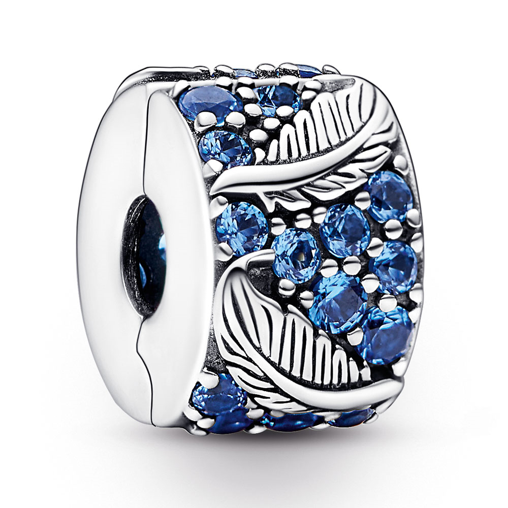 Feather sterling silver clip with night blue crystal - Design number: 792552C01