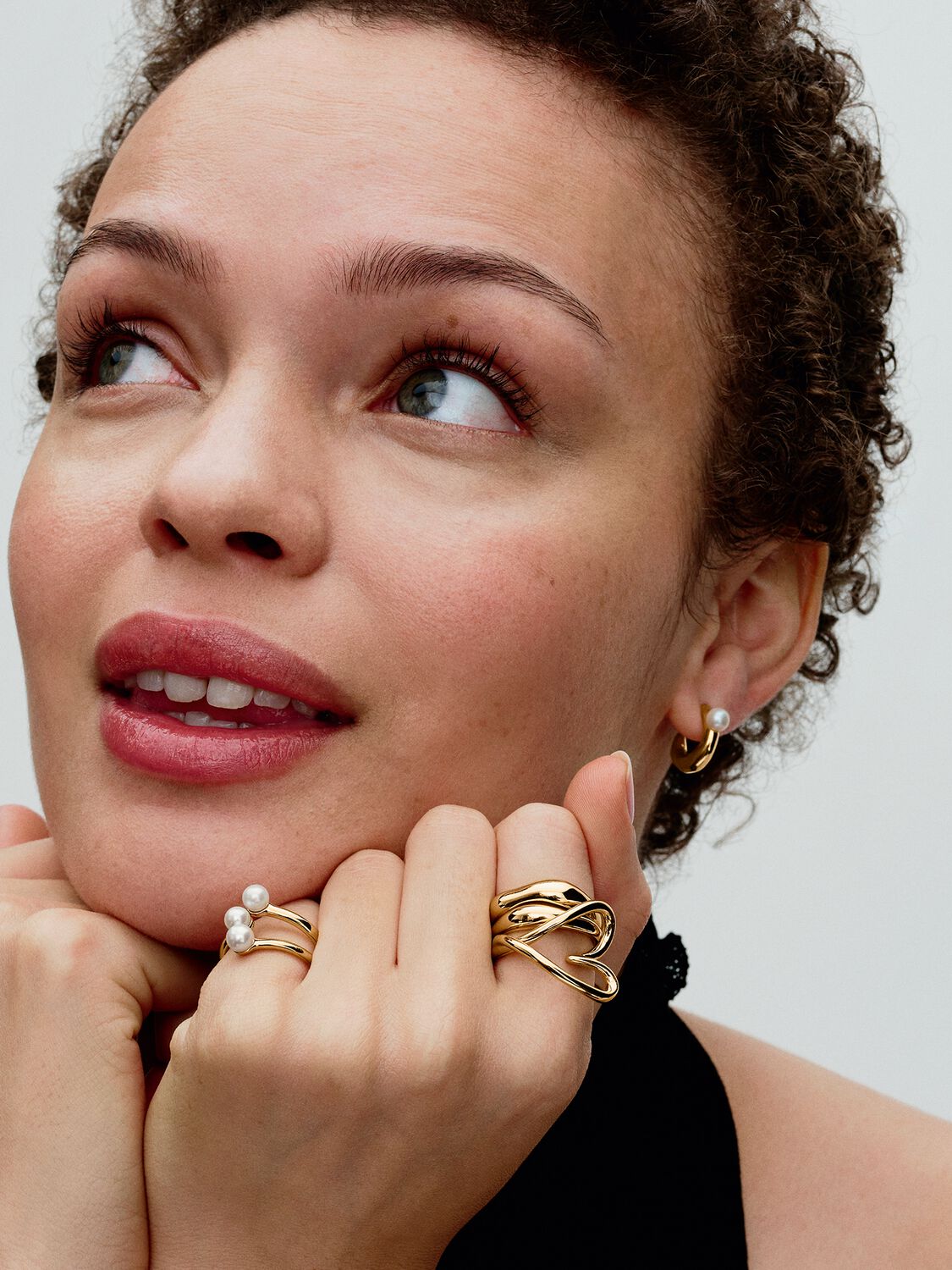 Treated Freshwater Cultured Pearl Open Ring - Design number: 163285C01-60