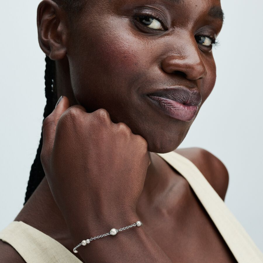 Add Interest To Your Outfit With Our Treated Freshwater Cultured Pearl Station Chain Bracelet In Sterling Silver. Seven Treated Freshwater Pearls, Each Unique In Size Are Elegantly Spaced Out Along The Chain, Creating A Timeless And Versatile Piece. The Intentional Pairing And Spacing Reflect The Beauty Of Individuality. With An Adjustable Closure And A Touch Of Sparkle From A Cubic Zirconia Stone, This Bracelet Celebrates Classic Pearls In The Pandora Timeless Collection. Please Note, Each Treated Freshwater Cultured Pearl Is Unique And Can Vary In Size And Colour; Normal Wear And Tear May Occur With This Material. Our Freshwater Cultured Pearls Are Treated With Bleaching And Lustre Enhancement. - Design number: 593172C01-20