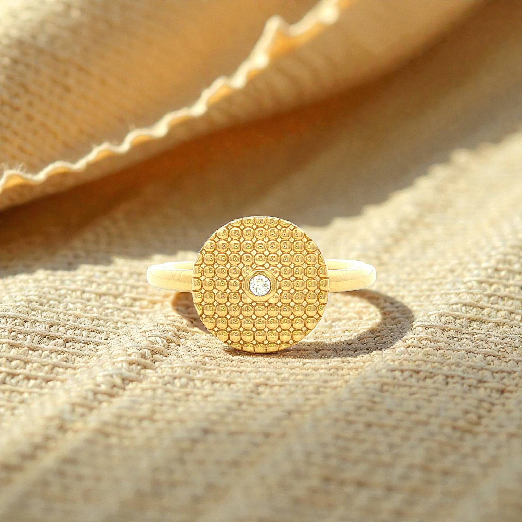 • Textured Disc Dress Ring in Yellow Gold