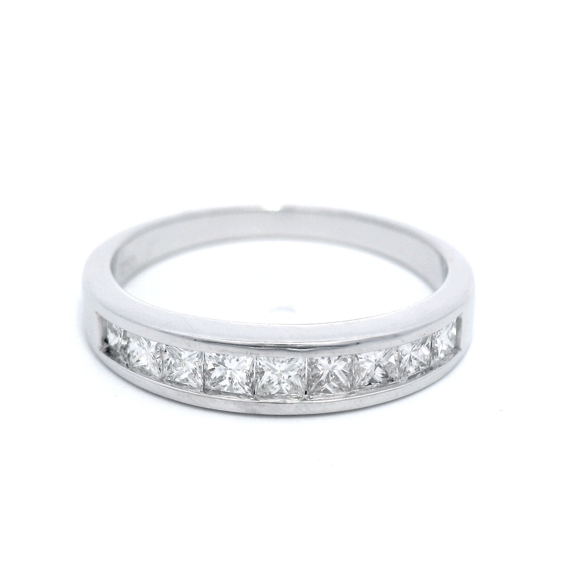 18 CARAT W/GOLD CURVED PRINCESS DIA RING SZ N