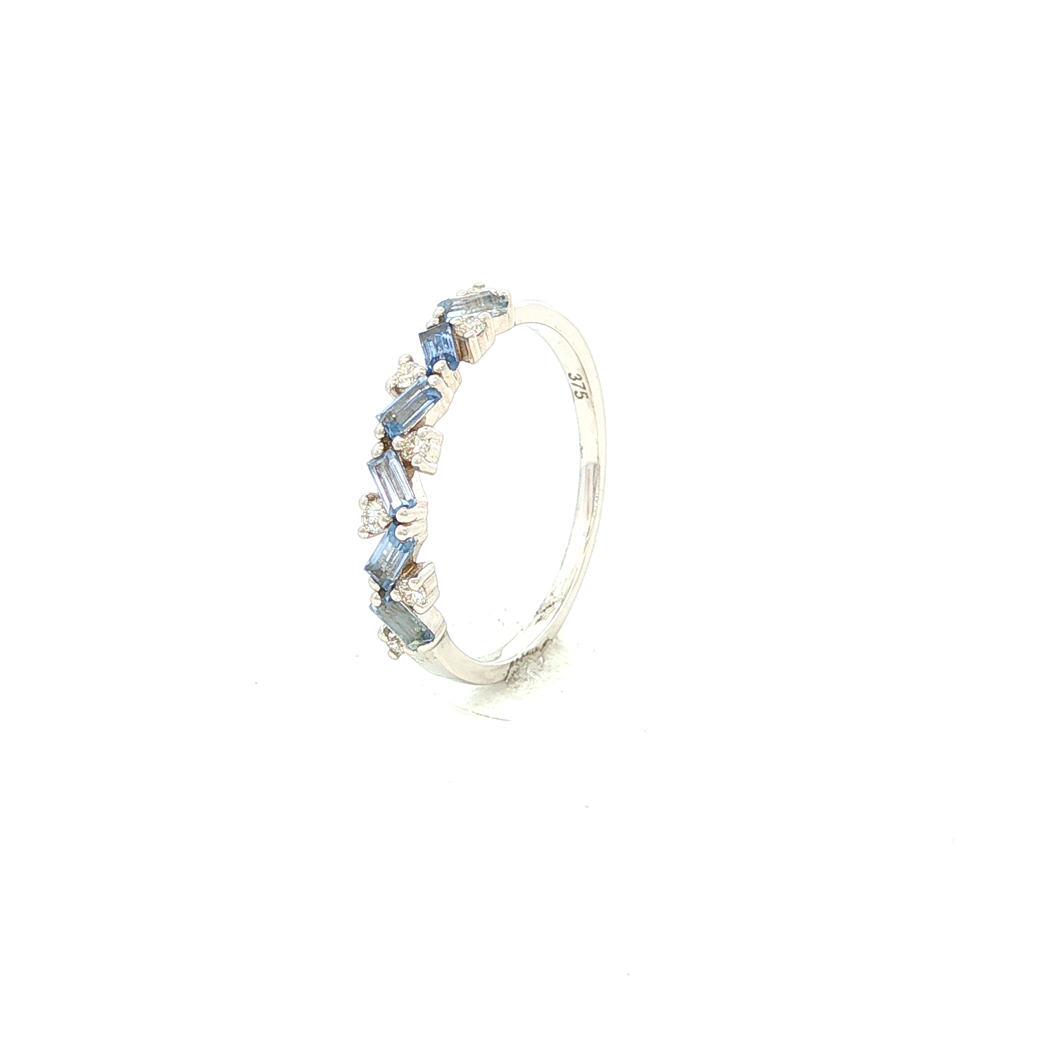 Metal Type: 9ct White Gold Gemstone 1: 6 x Ceylon Sapphire Shape: Baguette Gemstone 2: Diamond Colour: H Total Diamond Weight: 0.11ct