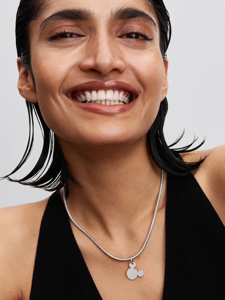 Introducing the first-ever engravable Disney x Pandora pendant, featuring Mickey Mouse's iconic silhouette in sterling silver. - Design number: 793994C00