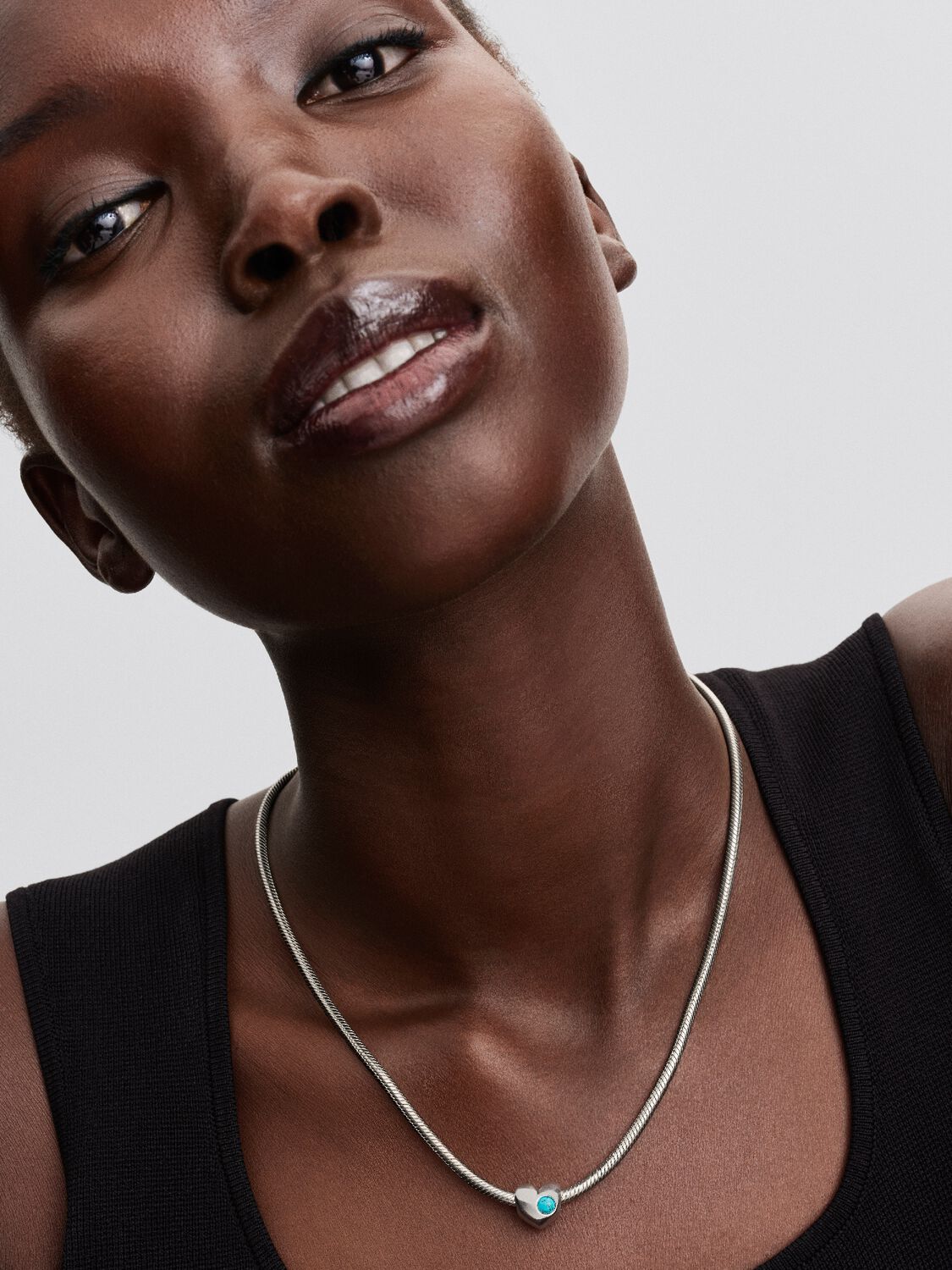 Engrave a message of love. Our sterling silver heart charm with a flush-set turquoise-inspired stone is the perfect canvas for a personal note or meaningful memento. - Design number: 794161C12