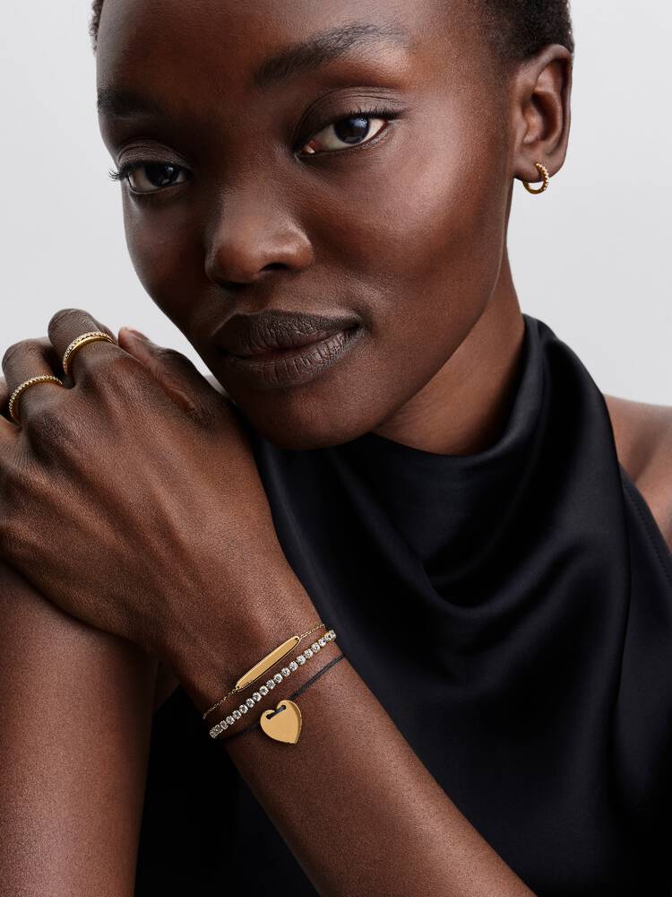 Put your love in words. This black cord bracelet features an engravable heart in 14k gold plating. With a sliding clasp, it secures easily and comfortably. A gift that means more – for yourself or someone else. - Design number: 564420C01-2