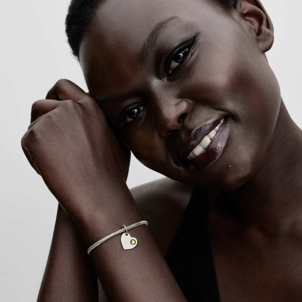 Wear your heart on your sleeve, literally. This sterling silver dangle charm pairs a honey-coloured man-made crystal with an engravable back — crafted to carry your most meaningful words.