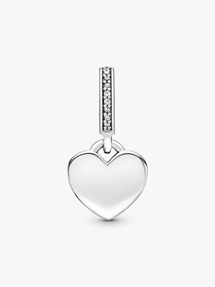 Your jewelry can now be as unique and special as you are with this Engravable Heart Tag Dangle Charm in sterling silver. This heart-shaped tag features an engravable front and back, where you can get the names of your friends, family and loves inscribed. A line of clear cubic zirconia accentuates the top and provides a touch of eye-catching sparkle. It’s easy to create your own unique style with a piece that is easy to personalize – the only limit is your imagination. - Design number: 798761C01_E005