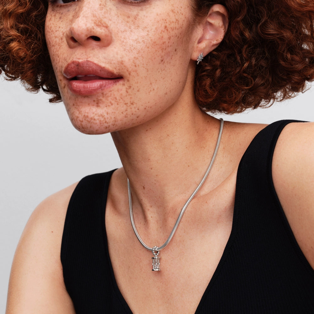 Time never stands still. This sterling silver Hourglass Dangle Charm features sparkling cubic zirconia, moveable stones inside and the engraving 'TIME IS PRECIOUS'. Wear it as a reminder to treasure every moment. - Design number: 794140C01