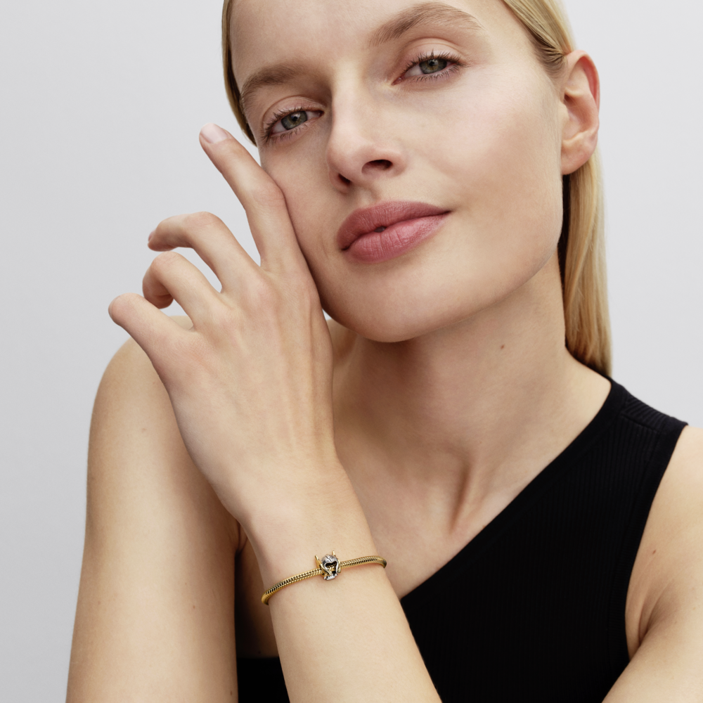 Channel the thunderous strength of Thor. Crafted in sterling silver and 14k gold plating, the helmet charm symbolises power, honour and responsibility. Wear it as a bold reminder of heroic legacy and unyielding courage.