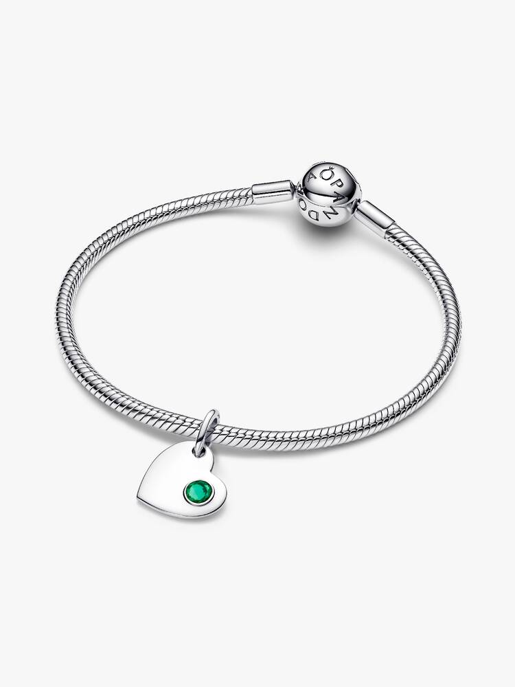 Pandora May Engravable Heart Green Stone Dangle Charm