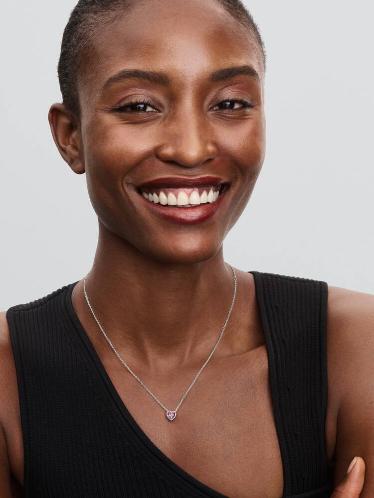A radiant pink heart-shaped stone, framed by pavé, symbolises love and gratitude. Suspended from an adjustable chain, this warm-toned piece adds a touch of sparkle to every moment. - Design number: 398425C02-45